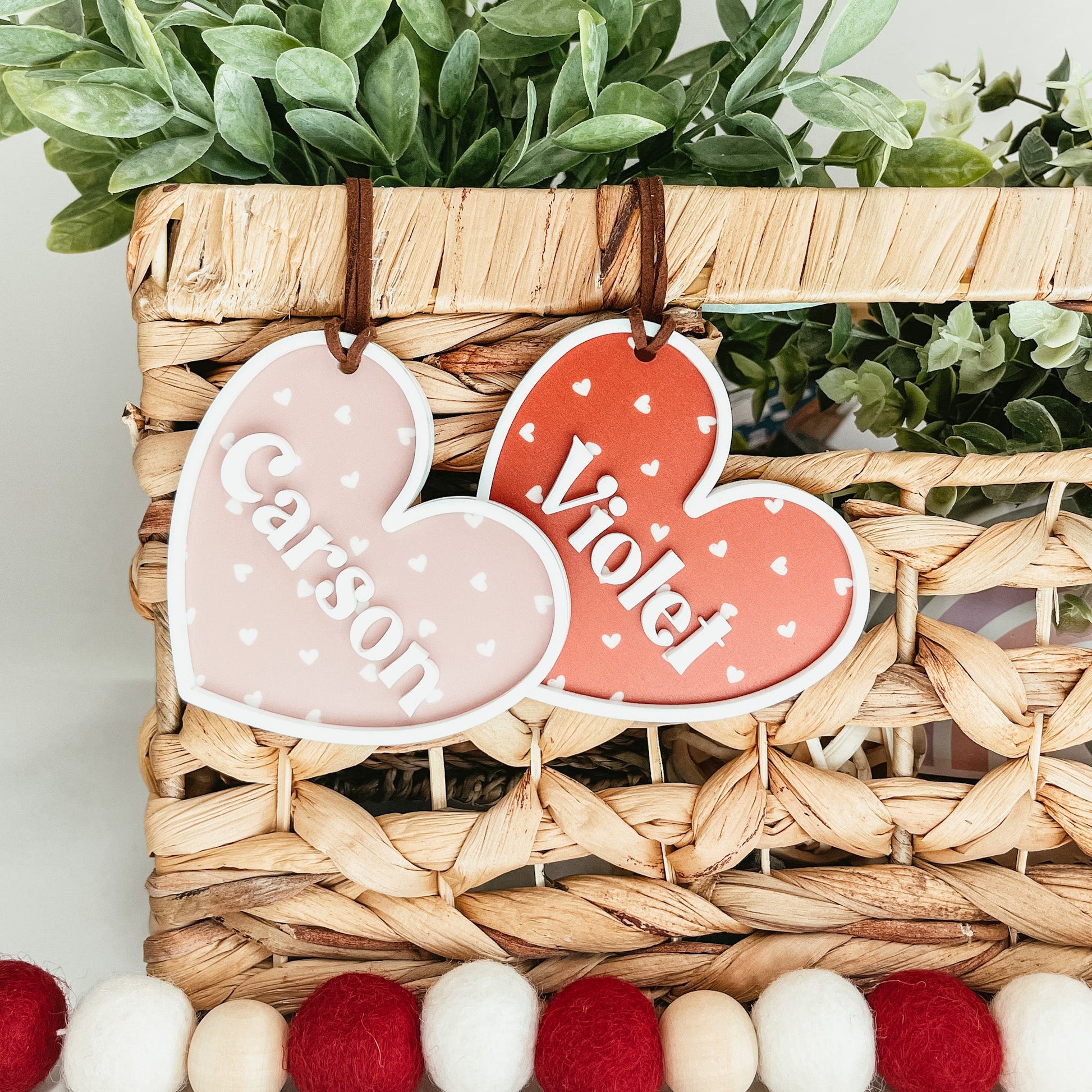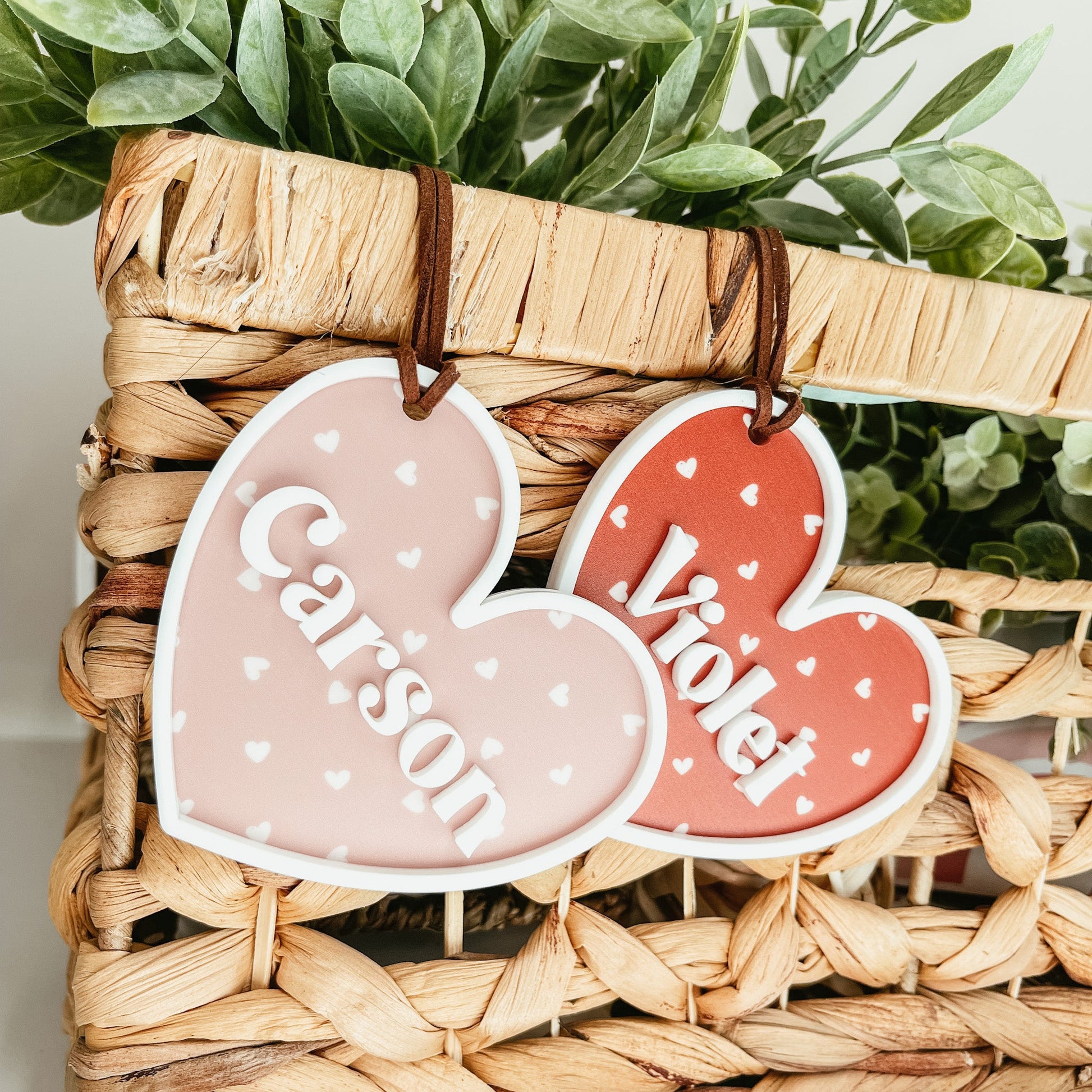 Each tag is made from two layers of white acrylic. The background pattern is printed directly onto the tag and the border/name are 3D.