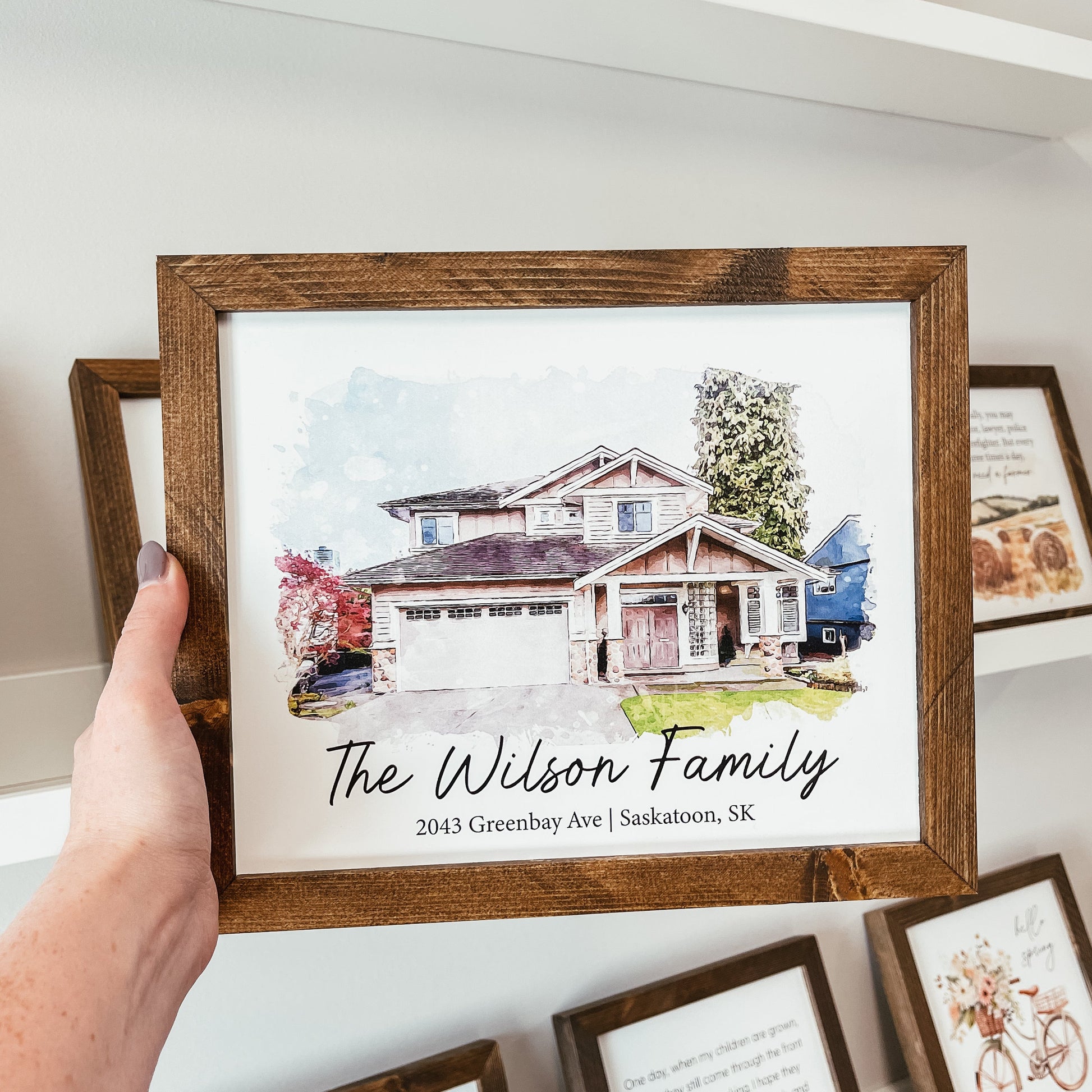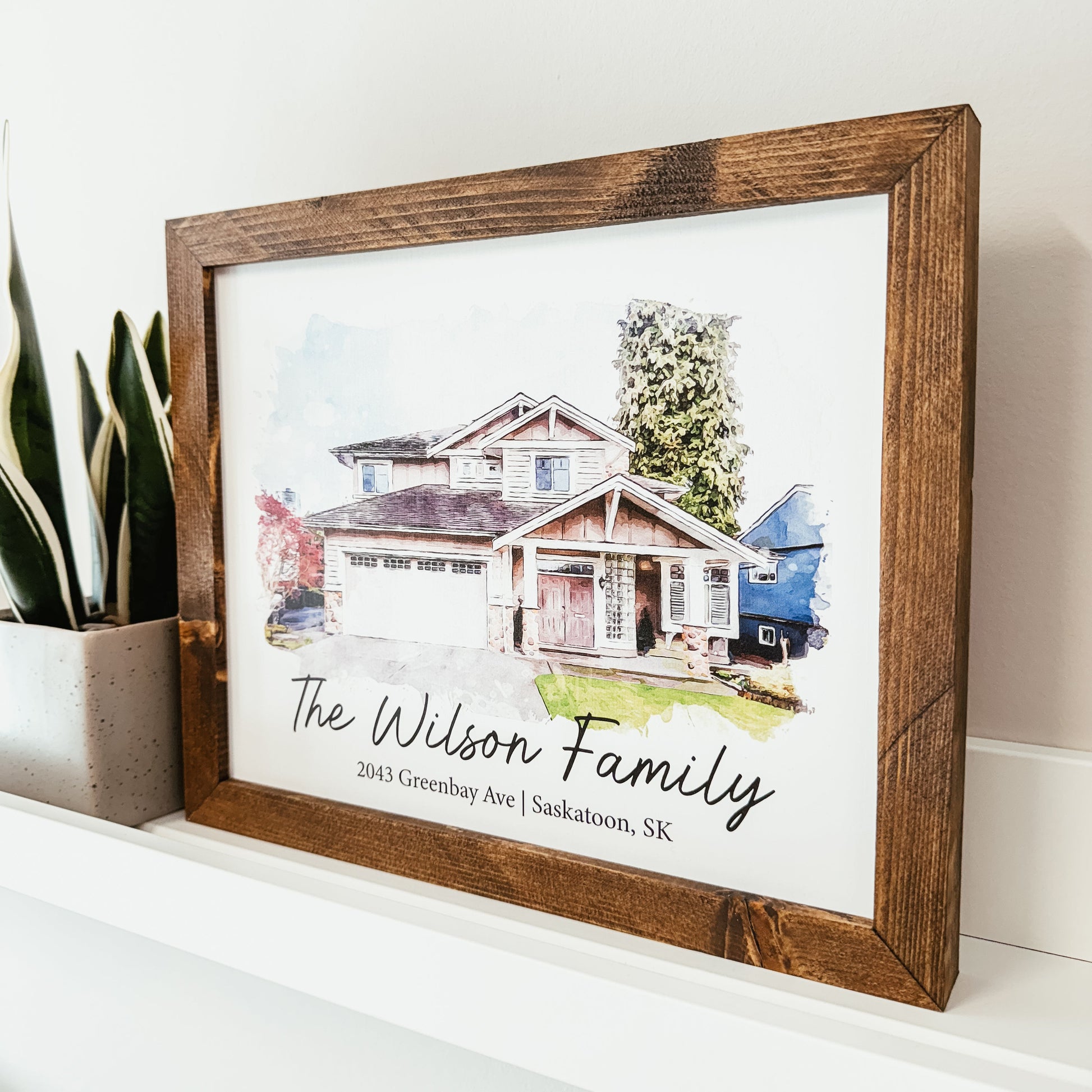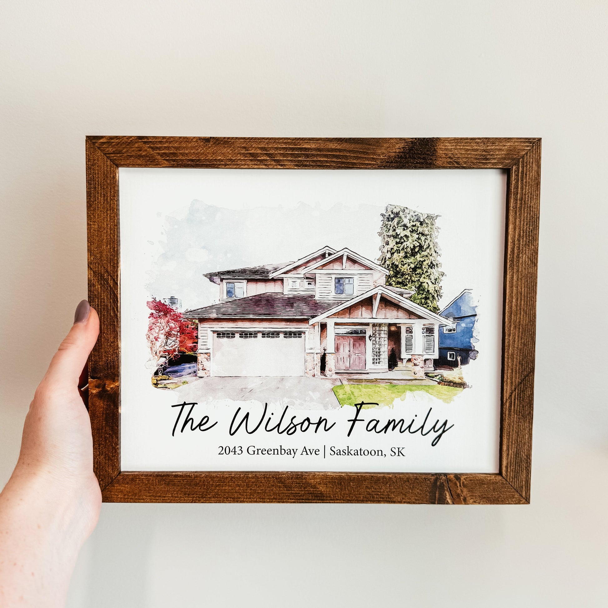 Watercolour Home Portrait Framed Sign
